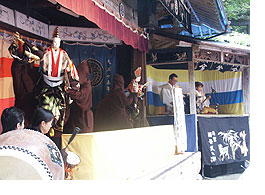 勝浦座、寄井座、中村園太夫座(岡花座)、木沢村芸能振興会、大谷旭源之丞座などで、古い伝統を守りつつ新しい工夫を重ね、県下の人形座の目標になっています。 |