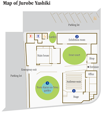 This is a purely Japanese-style garden of Bando Jurobe’s former residence, named Tsuru-Kame-no-Niwa (turtle and crane garden).